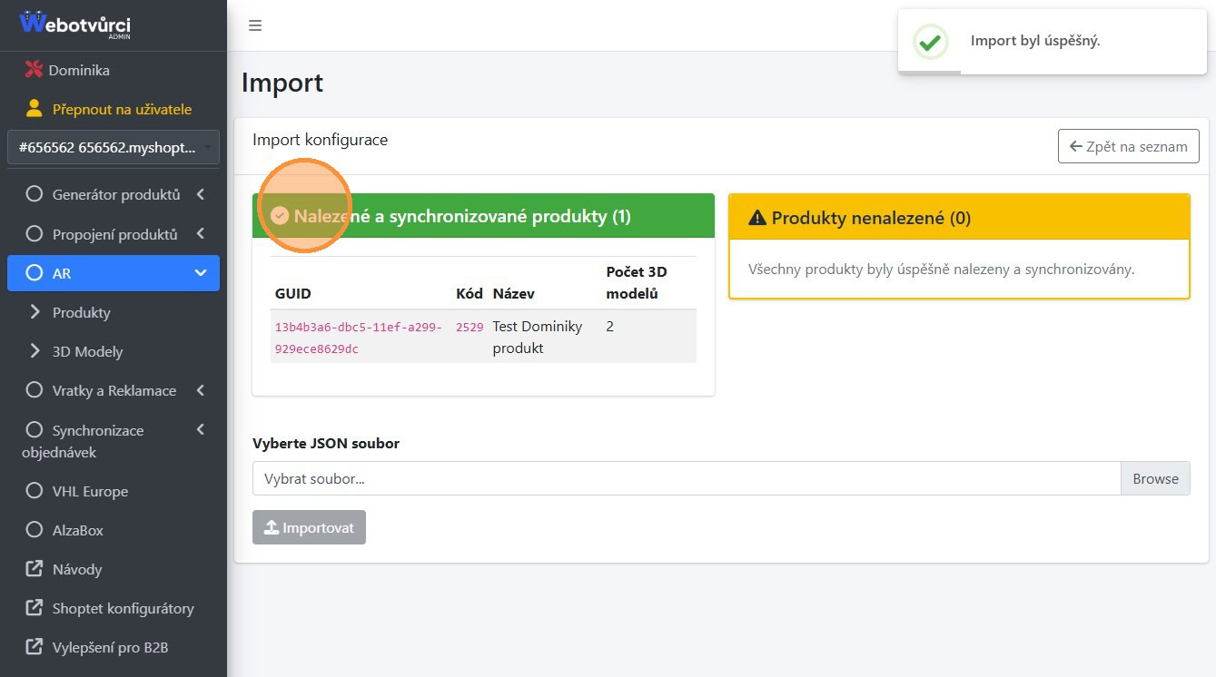 V případě úspěšné migrace se nahrají nejen modely, ale rovnou se i přiřadí k produktům podle vzoru ze zdrojového eshopu.