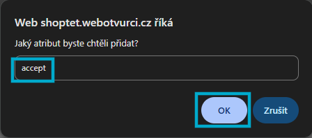 accept(často je tam již předpřipravený řádek, pokud ne, přidejte ho přes tlačítko+ Atribut).