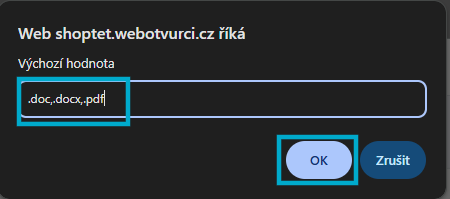 .pdfneboapplication/pdf - Pouze Obrázky: Do hodnoty napište